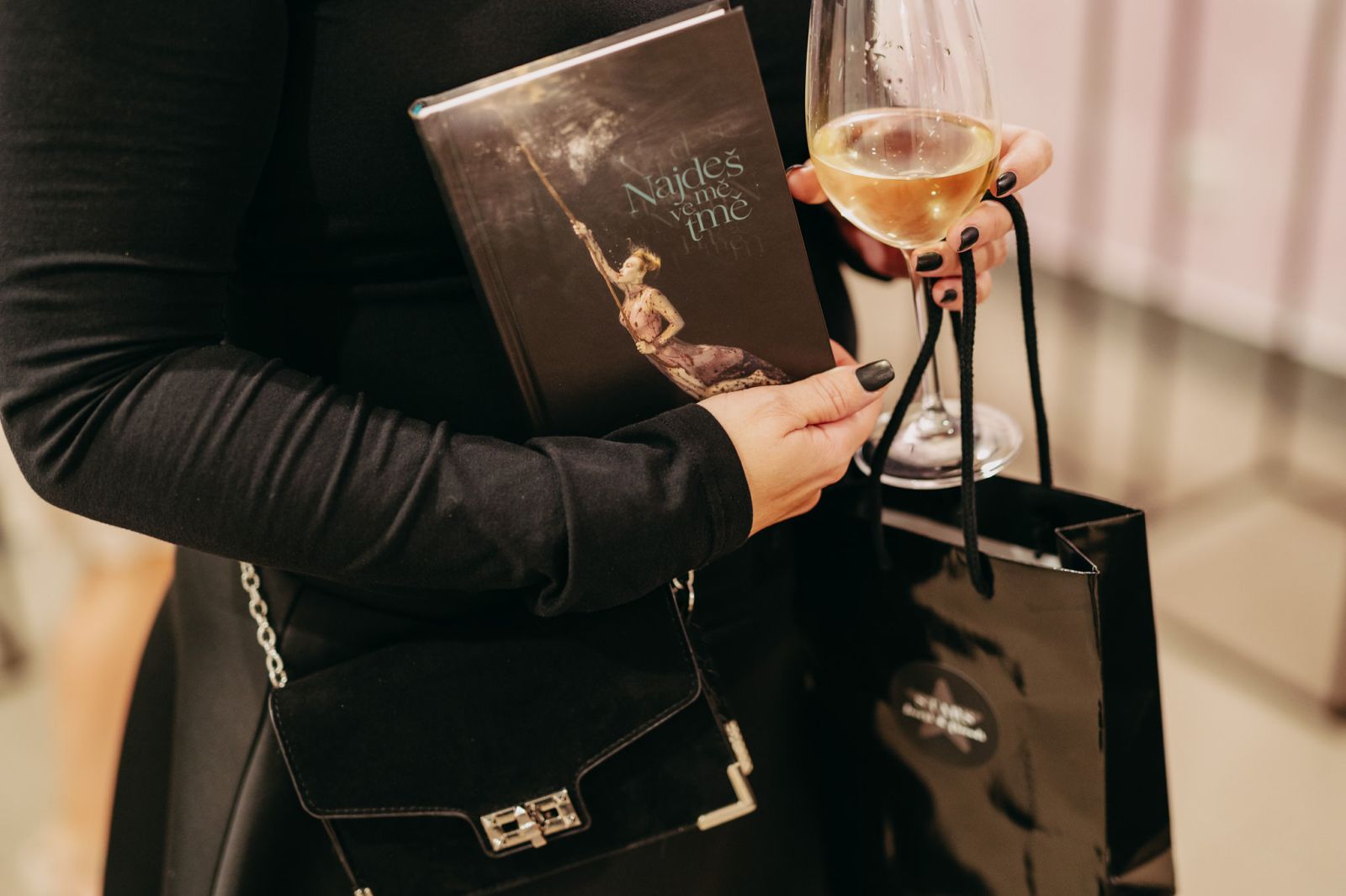 Kmotrou odvážné knížky nazvané NAJDEŠ MĚ VE TMĚ se stala herečka Kaira Hrachovcová a samotnému křtu předcházela sabráž provedená první českou Madame Cognac & Champagne Terezou Franc.